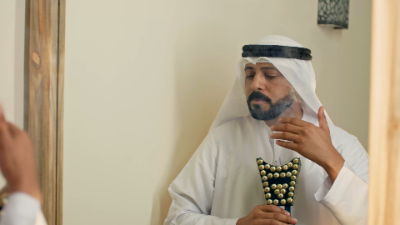 An Emirati man indulges in the rich aroma of Oud, a fragrance deeply rooted in Middle Eastern heritage. As the smoke swirls around him, it symbolizes tradition, elegance, and a timeless ritual passed down through generations.
