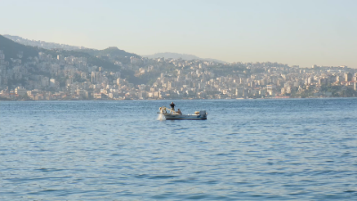 Two fishermen are captured in their boat, skillfully pulling a fish net out of the sea. The scene showcases the hard work and tradition of fishing, set against the peaceful backdrop of the open water.
