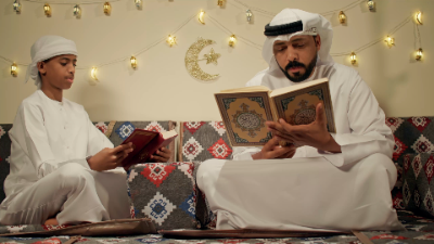 An Emirati father and son deepen their connection through prayer and the teachings of the Holy Quran.