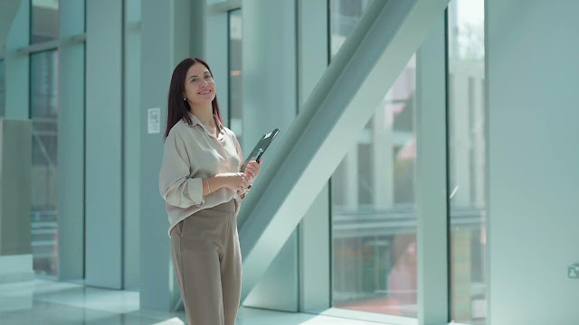 womanwalkinglaptopbusiness attireprofessionaldifcconfident