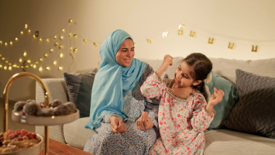 The warmth of motherhood shines as an Emirati mom and her daughter share laughter, love, and playful fun