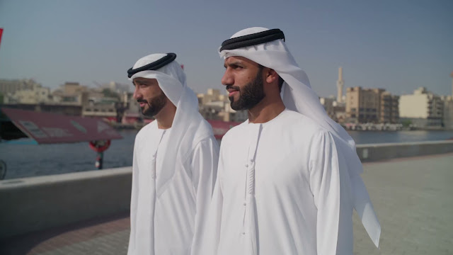 Two Emirati Men Walking Along Dubai Creek