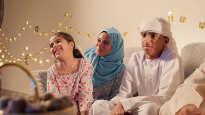 A simple but heartwarming family moment—parents, a son, and a daughter enjoy their favorite show and interact with each other.