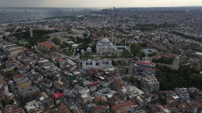 Approaching the Blue Mosque: Aerial View of Istanbul