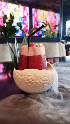 a unique drink with a magical touch! The fog rising from the shell around the glass created a dreamy atmosphere — as if the drink came from another world. Every detail, from the lighting to the composition, was crafted to highlight the color