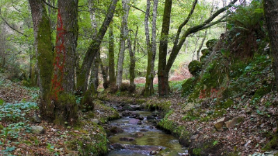 Flowing stream in the forest during the fall in Skikda, Algeria.