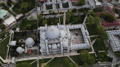 Top-Down View: Drone Flight Towards Istanbul's Mosque
