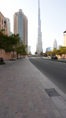 Fast walking in Downtown Dubai with the beautiful Burj Khalifa view.