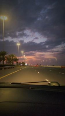 A car ride view at night in Abu Dhabi highway