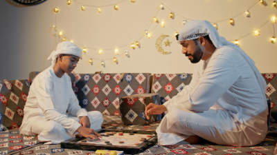 Emirati father and son strengthen their bond through a night of board games.